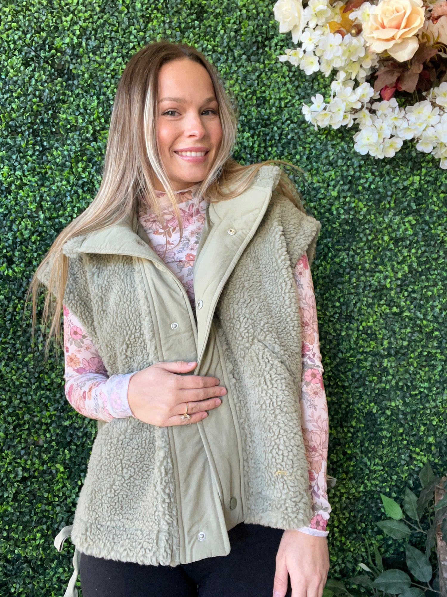 Olive Sherpa Vest